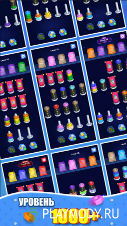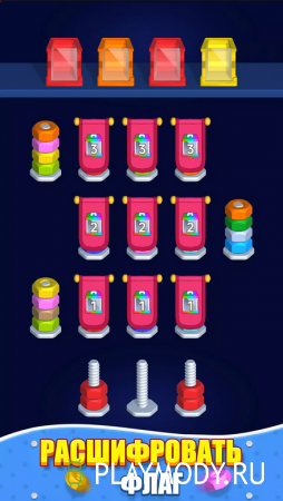 3D Nuts Sort - игра, способная бросить вызов вашим логическим способностям. На протяжении более чем тысячи уровней вам придется сортировать цветные гайки и нанизывать их на штыри соответствующих цветов. К концу игры прохождение уровней превратится в настоящий мозговой штурм, справиться с которым смогут далеко не все, включая опытных мастеров головоломок. Но шанс дойти до конца все-таки есть. Задания начальных уровней довольно просты и вполне подойдут для выработки навыков и собственной стратегии прохождения. Решайте головоломки, получайте награды и двигайтесь дальше. Впереди все только сложнее и интереснее. Красочная трехмерная графика и интуитивное управление делают эту игру идеальной для отдыха. Убедитесь в этом сами.