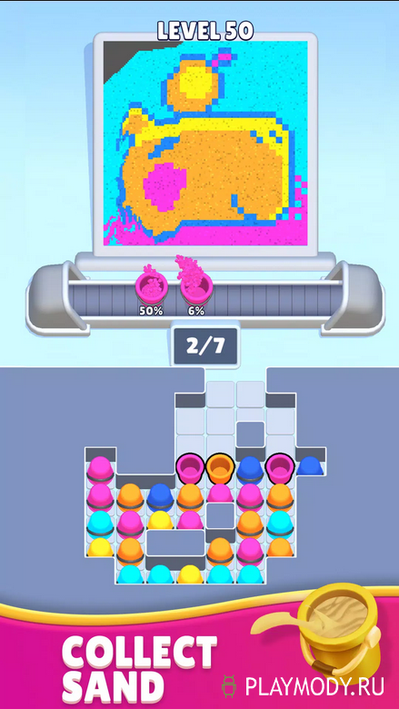 Sand Loop прелагает вам расслабиться и отлично провести время в спокойной атмосфере, создавая потрясающие песочные картины. Необходимые для них материалы, то есть цветной песок, вы будете добывать с помощью уникального механизма и далее отправлять ведра с песком по конвейерной ленте. Высыпая его, вы сможете наблюдать, как красочные песчинки переплетаются в неповторимые «живые» узоры. Традиционно для головоломок, задания уровней постепенно усложняются. На пути игрока появляются новые препятствия. Иногда неожиданно сложные, но в этом и заключается привлекательность головоломок. Предложите эту игру членам своей семьи и устройстве творческое противостояние «песочных» художников.