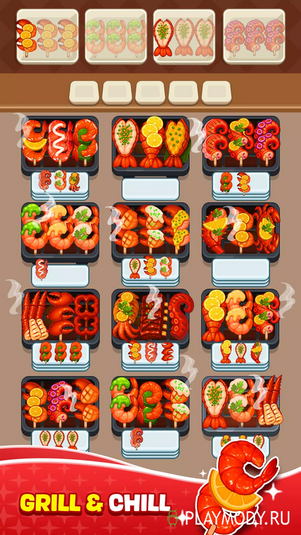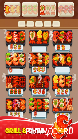 Skewer Jam: Food Sort приглашает вас в увлекательное фуд-путешествие, в котором вам пригодятся навыки приготовления различных блюд на гриле и сортировки предметов. Ведь на протяжении всей игры вы будете нанизывать различные продукты по три на шампура и готовить из них барбекю. Делать это нужно быстро, поскольку еда перемещается по конвейерной ленте. И нужно успевать заполнять каждый просвет на ней. Зажаривайте продукты до хрустящей корочки. Помимо гриля для этого можно использовать дополнительные бонусы, в числе которых быстрые перевороты и огненные взрывы. Опробуйте их на деле и станьте настоящим мастером барбекю, каждое движение которого четко отработано и продумано. Игра порадует вам простым управление и сочной графикой. А дополнит картинку аппетитный хруст.