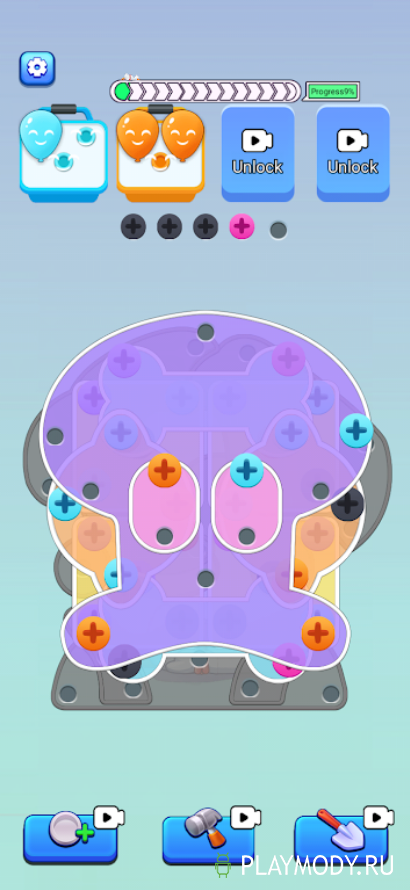 В отличие от заданий управление предельно просто. Нажимаете на нужный штифт и проводите пальцем по экрану, чтобы отправить его в ячейку соответствующего цвета. Удастся ли вам стать мастером откручивания штифтов и сортировки элементов по цветам.