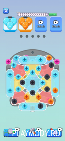 Screw Jam Master - очередная игра, требующая от игрока умения логическим мыслить и просчитывать свои действия на несколько ходов вперед. Задания всех ее уровней заключаются в разборе фигур и сортировки цветных штифтов. Некоторые из них довольно просты, но с каждым следующим уровнем фигуры усложняются, заставляя подключить пространственное мышление. Вы можете разбирать их в обеденный перерыв, в транспорте или отдыхая после трудового дня на мягком диване.
