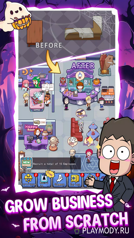 Happy Escape Tycoon - это возможность стать настоящим магнатом в мире развлечений, открыв целую серию квест-комнат с запутанными заданиями. Первым камнем в ее фундамент станет небольшой центр квестов, который вам предстоит развивать вместе со своей командой. Начните с формирования идеи, которая привлечет к нему внимание посетителей. Это может быть народная сказка, манга, аниме, рассказ и так далее. От этого выбора зависят все ваши дальнейшие действия. В частности, оформление помещений, подбор аксессуаров, создание преград и ловушек. Работы много и с ней вам поможет команда настоящих профессионалов, которую вам еще предстоит собрать. Работайте, привлекайте клиентов и вкладывайте прибыль в дальнейшее развитие бизнеса, ведь в этом и заключается смысл экономического симулятора.