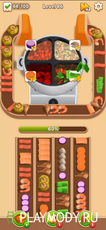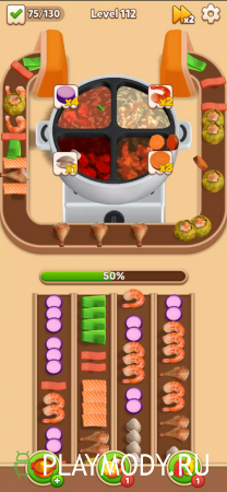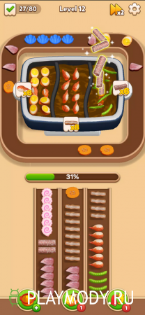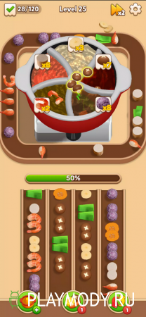 Hotpot Fever — захватывающая головоломка и кулинарный симулятор разом. Здесь вам не нужно просто жарить котлеты; ваша задача — управлять конвейером с ингредиентами, которые летят прямиком в кипящий котел (хотпот). Суть в том, чтобы вовремя тапать по экрану, переворачивать и сортировать продукты — креветки, колбаски, морепродукты — подгоняя их под нужные пузырьки в горшочке. Ошиблись с местом или перегрузили ленту? Кухня сгорает, и раунд окончен. Геймплей затягивает именно своей механикой: это быстрый, умный и местами хаотичный процесс, где нужно ловить ритм конвейера. Визуал в игре на высоте — еда выглядит настолько реалистично, что буквально чувствуешь запах бульона, а каждый удачный «флип» продукта сопровождается приятным звуком.