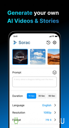 Скачать взломанную Sorac.ai - AI Video Generator v 1.3 (Мод Premium/разблокировано)